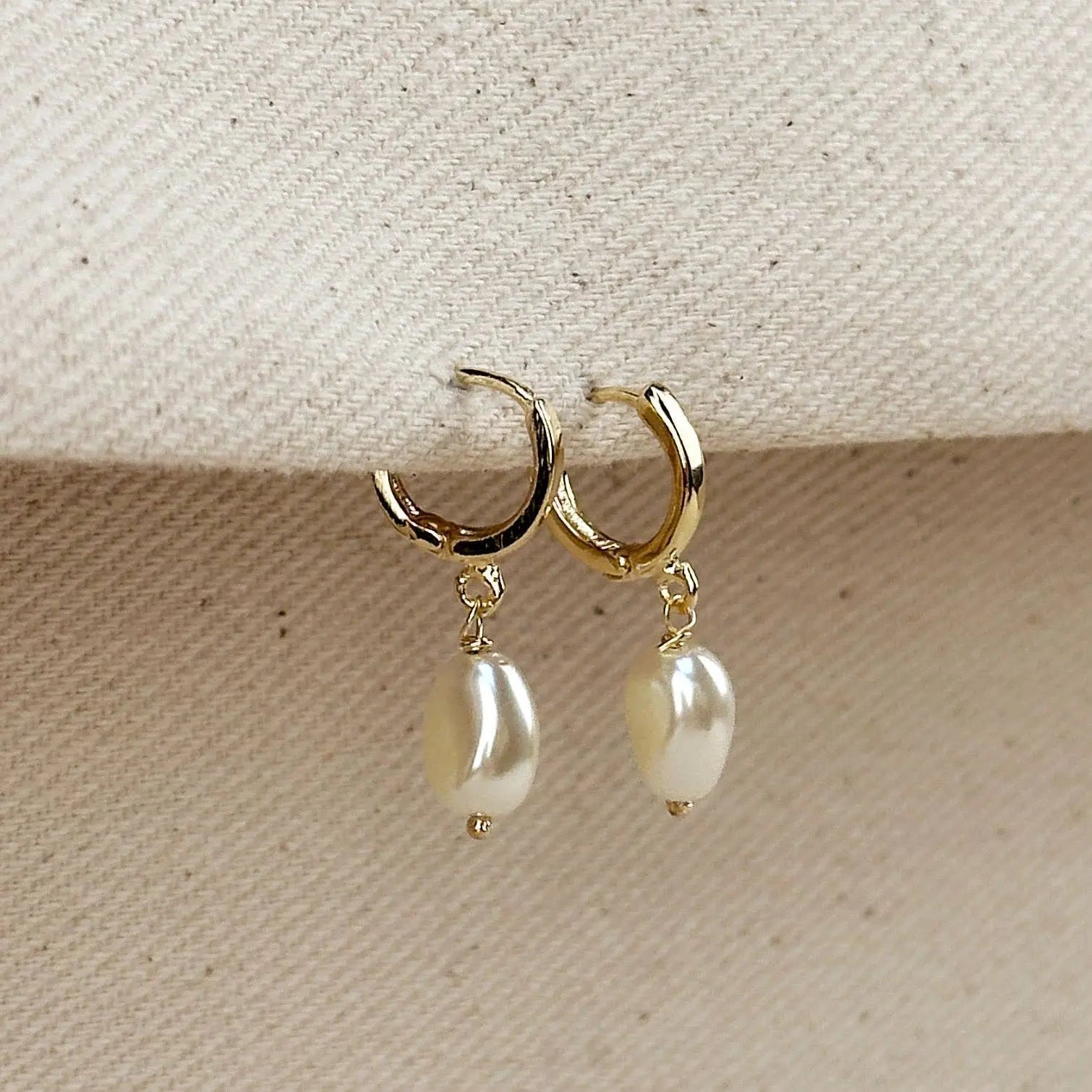 18k Gold Filled Drop Baroque Pearl Hoop Earrings