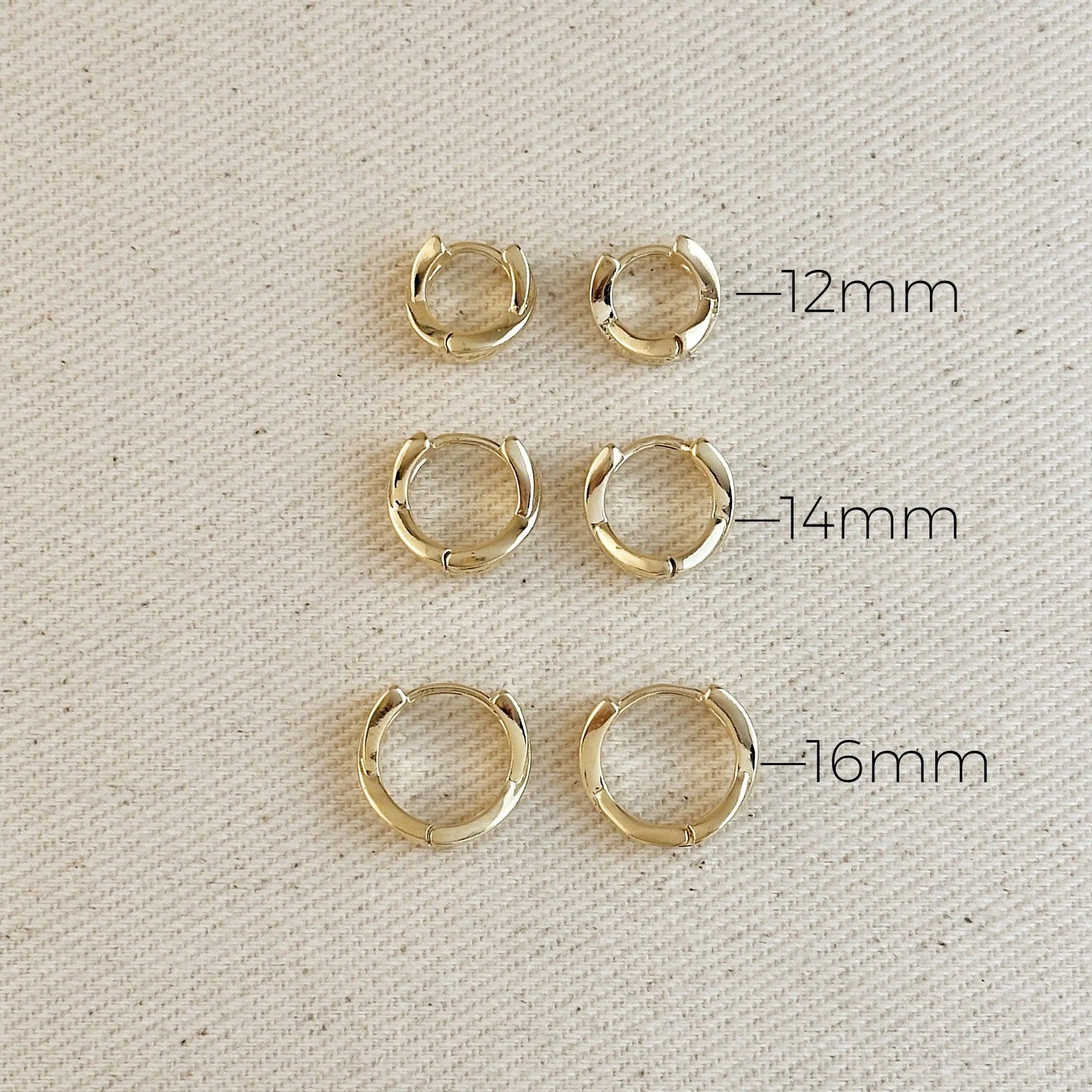 18k Gold Filled X Clicker Hoop Earrings bring timeless elegance to your jewelry collection. The distinctive X-pattern design catches light beautifully, while the secure clicker closure ensures comfortable all-day wear. Available in three sizes - 12mm, 14mm, and 16mm external diameter - these premium gold-filled hoops offer lasting durability. Perfect for both everyday wear and special occasions, they add a sophisticated touch to any look. * Metal : 18k Gold Filled * Available Sizes: 12mm, 14mm and 16mm external diameter * Sizes sold separately * Hypoallergenic jewelry - Nickel Free * Water-resistant * Rigorously manufactured under CA Prop 65 and EU standards * Handcrafted in Brazil *Model is wearing size 14mm hoops.