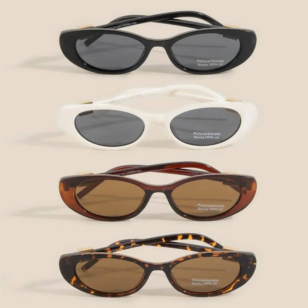 Sleek and modern, this set of sunglasses contains a special metallic accent wide oval lens sunglasses set design. Transform your outfit from ordinary to extraordinary with the touch of elegance provided by this versatile set of sunglasses.