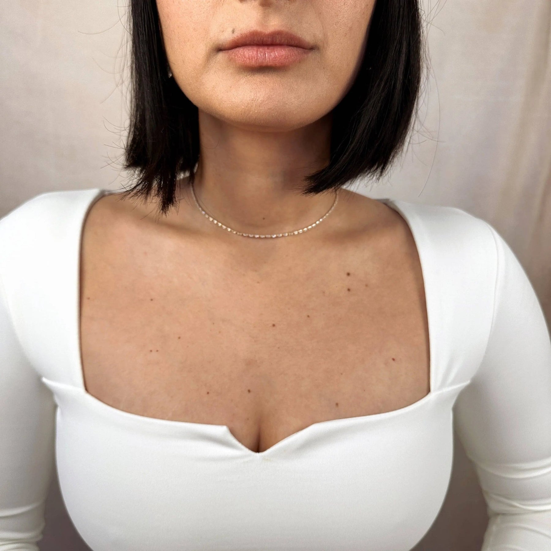 Sparkle and shine with our 18k Gold Filled 1.5mm Baguette CZ Tennis Necklace. Delicate and stunning, this necklace is sure to add a touch of elegance to any outfit. Impeccably crafted with sparkling cubic zirconia, it's the perfect accessory to elevate your look and make you feel like a true star! * Metal: 18k Gold Filled * High-quality Cubic Zirconia AAAAA * Width: 1.5 mm x 3mm baguette CZ chain * Size: 11.5" long + 4 inches extender chain * Hypoallergenic * Water-resistant * Handcrafted in Brazil