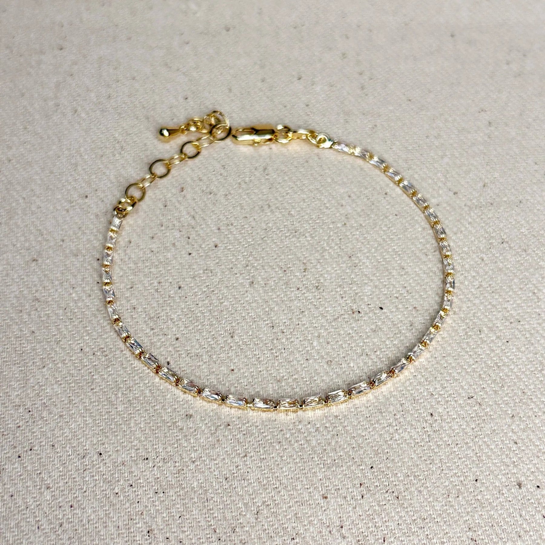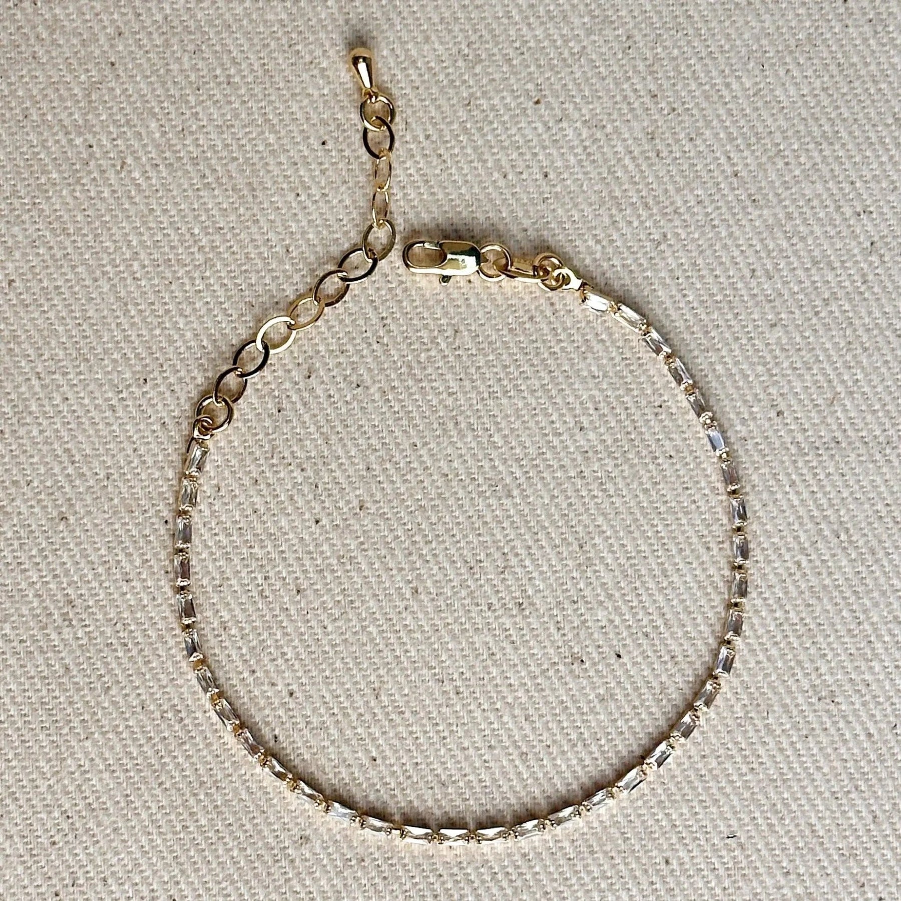 18k Gold Filled 1.5mm CZ Baguette Tennis Bracelet - Beloved Boutique