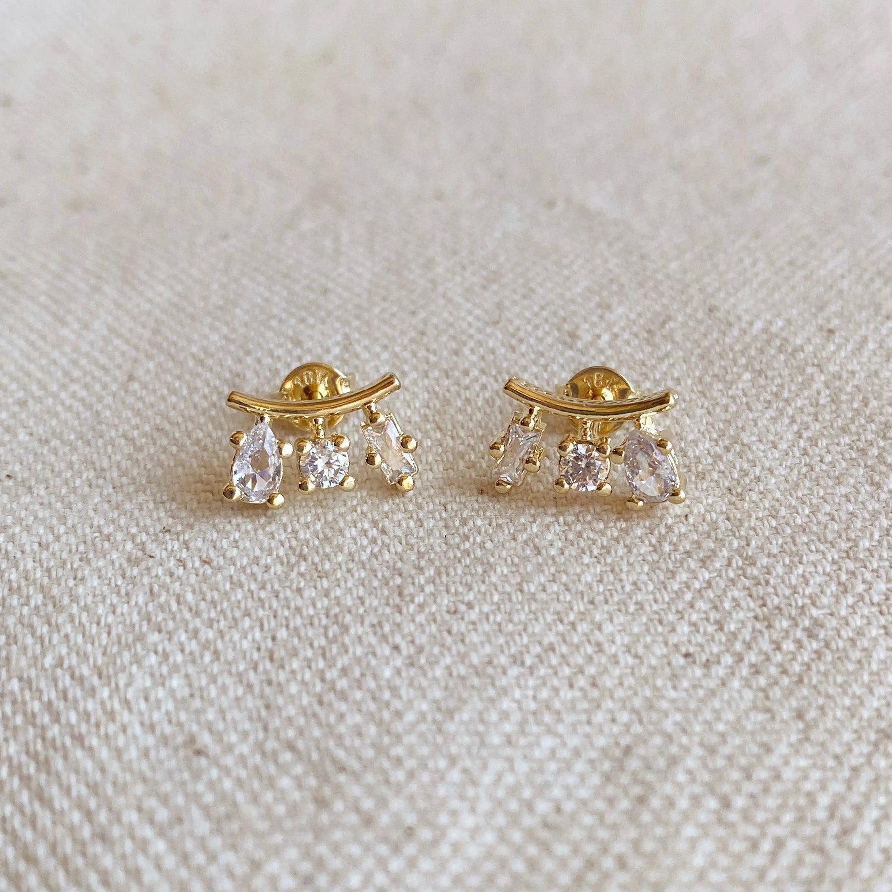 18k Gold Filled Clear Cubic Zirconia 3-Shapes Stud Earrings