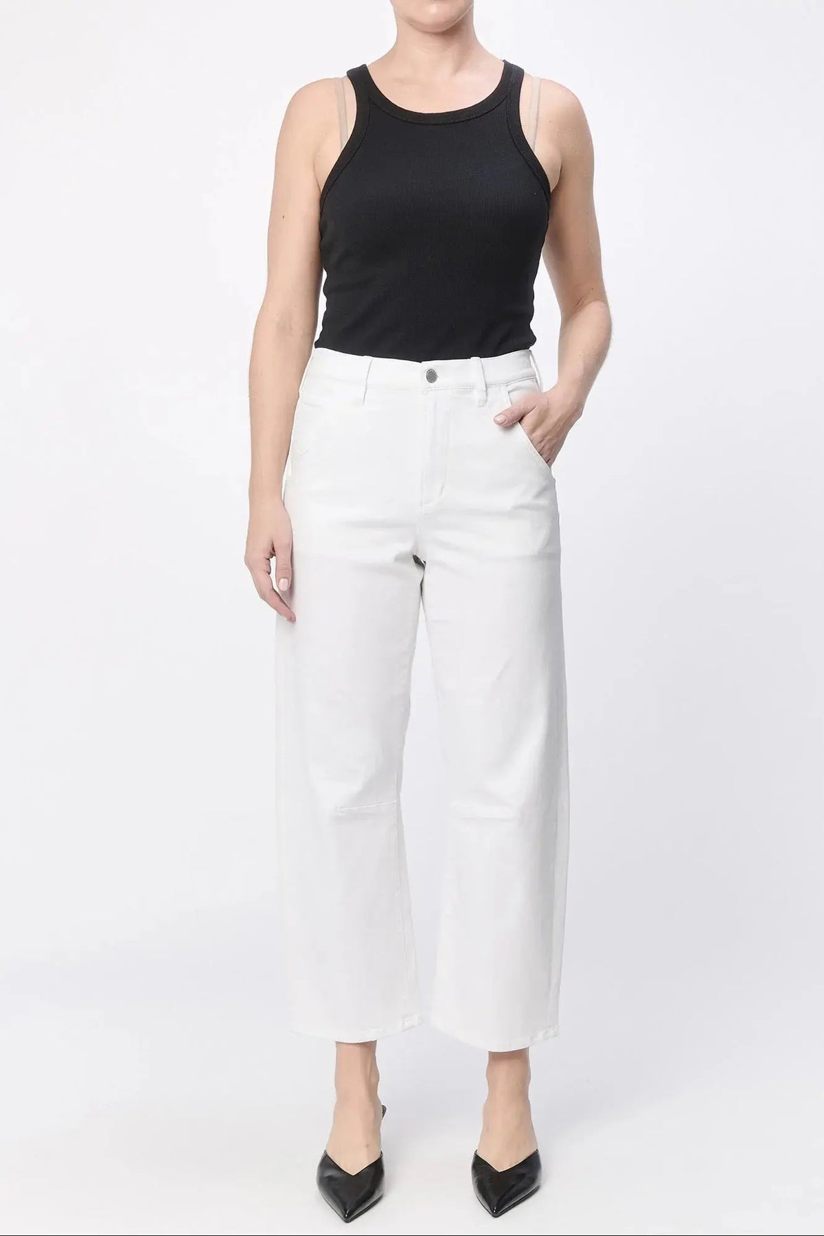 Lasso Baggy Fit Pant Step into effortless style with the Lasso Baggy Fit Pant in Summer White! These high-rise trousers feature a clean hem and a premium white denim blend that keeps you comfy while turning heads. With a flattering fit and a versatile 26.5" inseam, they’re perfect for everything from brunch dates to weekend adventures. Add a playful twist to your wardrobe with these chic, easy-to-wear pants that bring sophistication and fun together in one perfect package. Product Details: 90% Cotton 8% Polyester 2% Spandex Front Rise: 11" (Include Waistband) Leg Opening: 18" Inseam: 26 1/2" (Size 27) Fit: runs a little big so we suggest sizing down one size Try it on in person at our store located in Breckenridge, Colorado!