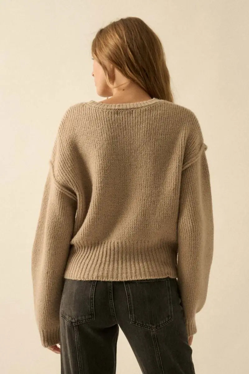 Tesla Sweater Meet the kind of sweater that quietly steals the show: the Tesla Sweater. Effortless, cozy, and perfectly undone, this knit is all about elevated simplicity with just enough detail to make it special. The exposed seams throughout add a modern, lived-in feel, giving this sweater that “cool without trying” vibe we’re always chasing. Designed with a classic round neckline, drop shoulders, and a relaxed fit, the Tesla Sweater drapes beautifully for an easy, flattering silhouette. Ribbed trim at the collar, cuffs, and hem keeps the look clean and polished while still feeling laid-back. It’s the perfect throw-on piece for everyday wear—pair it with denim and sneakers for casual days, layer it over leggings for cozy weekends, or dress it up with trousers and boots for an effortless elevated look. This is one of those sweaters you’ll grab again and again because it just works. Product Details Solid knit design Round neckline Long sleeves Drop shoulder silhouette Exposed seams throughout Ribbed knit collar, cuffs, and hem Relaxed fit Fit True to size with a relaxed, easy fit Model is 5'10" and wearing a size Small Easy, versatile, and endlessly wearable—this sweater belongs on repeat in your weekly lineup.