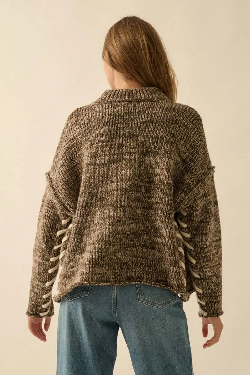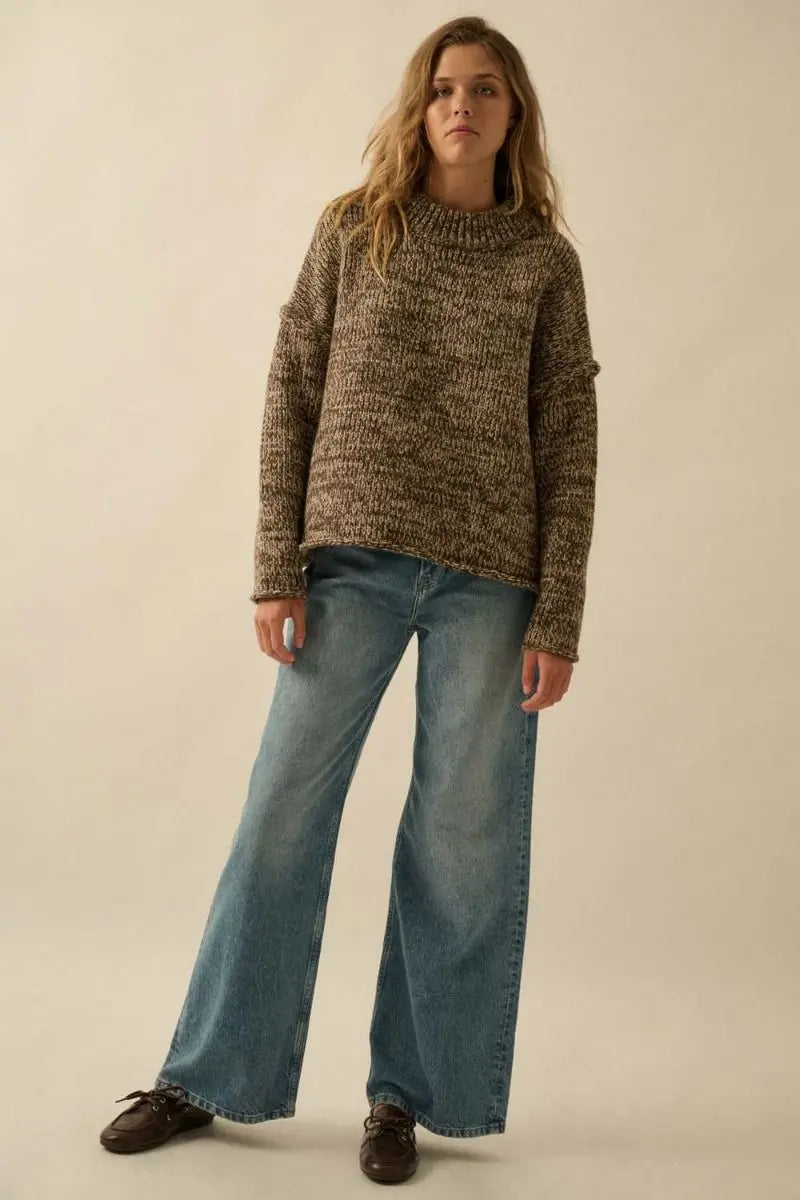 Two-tone marled knit sweater